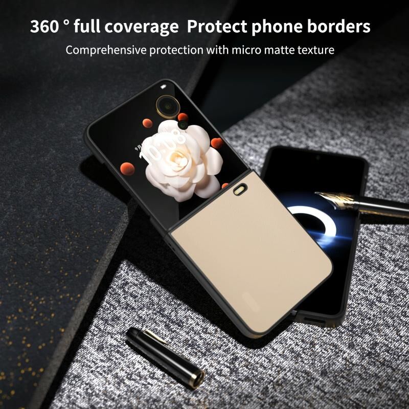 Για Honor Magic V Flip PU δέρμα μαύρο πλαίσιο πλήρους κάλυψης τηλέφωνο υπόθεση (Ροδακινί ροζ)