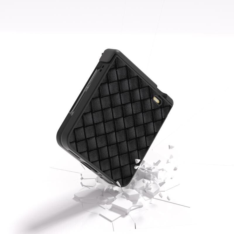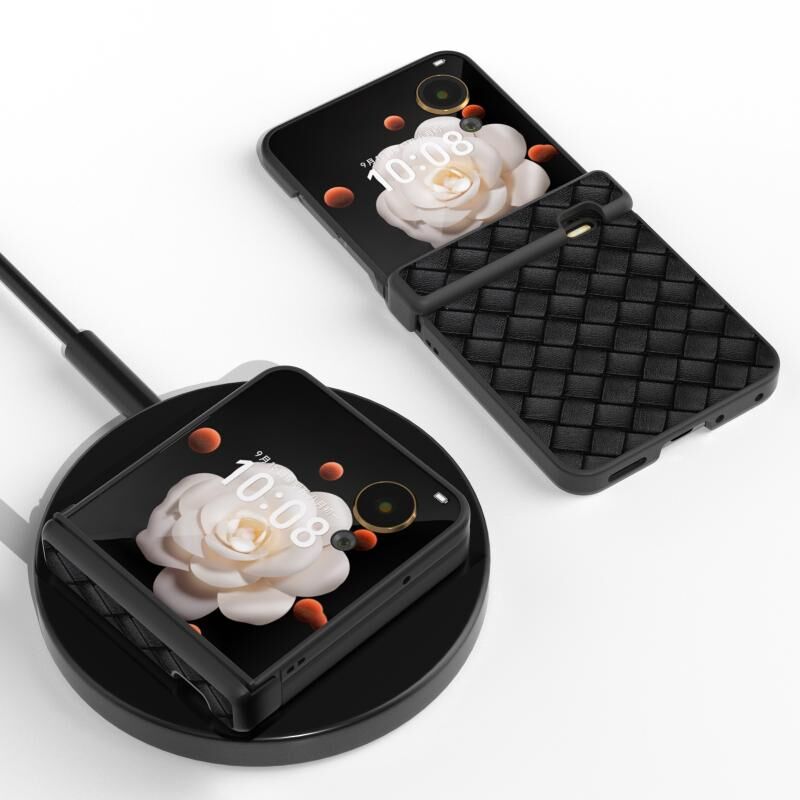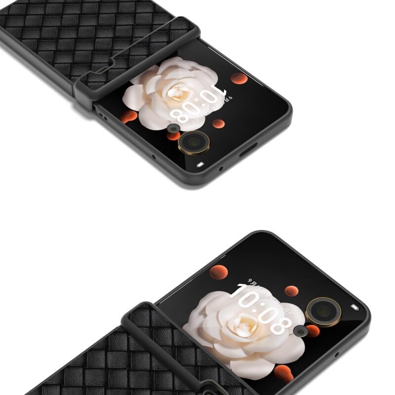 Για Honor Magic V Flip τρία μέρη μαύρο πλαίσιο υφαντά υφή PU τηλέφωνο υπόθεση (μαύρο)