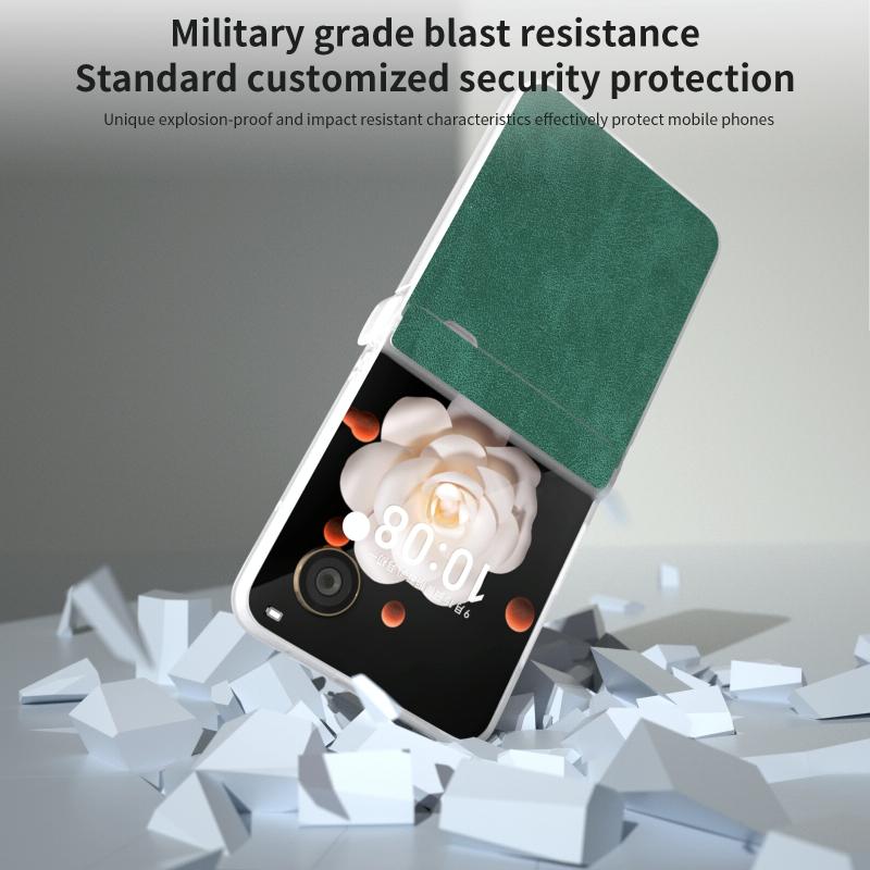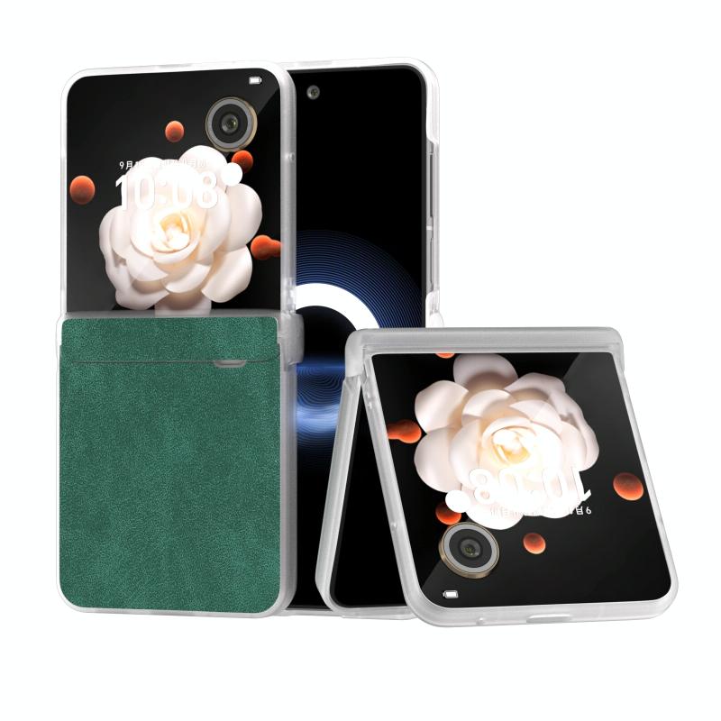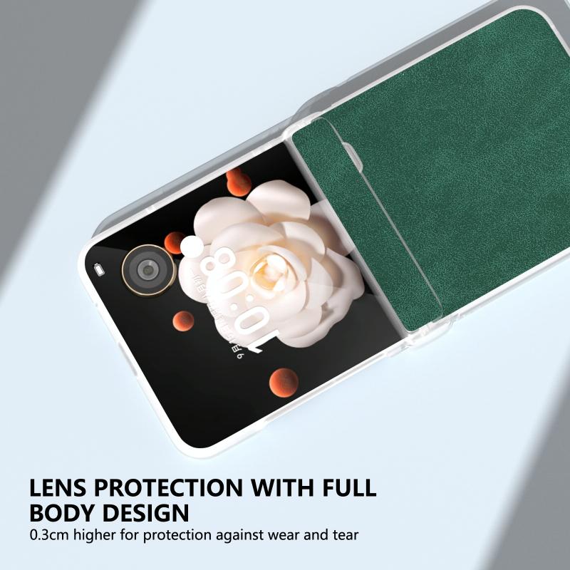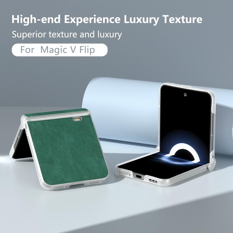 For Honor Magic V Flip Three Parts PU Leather Frosted Transparent Edge Phone Case(Green)