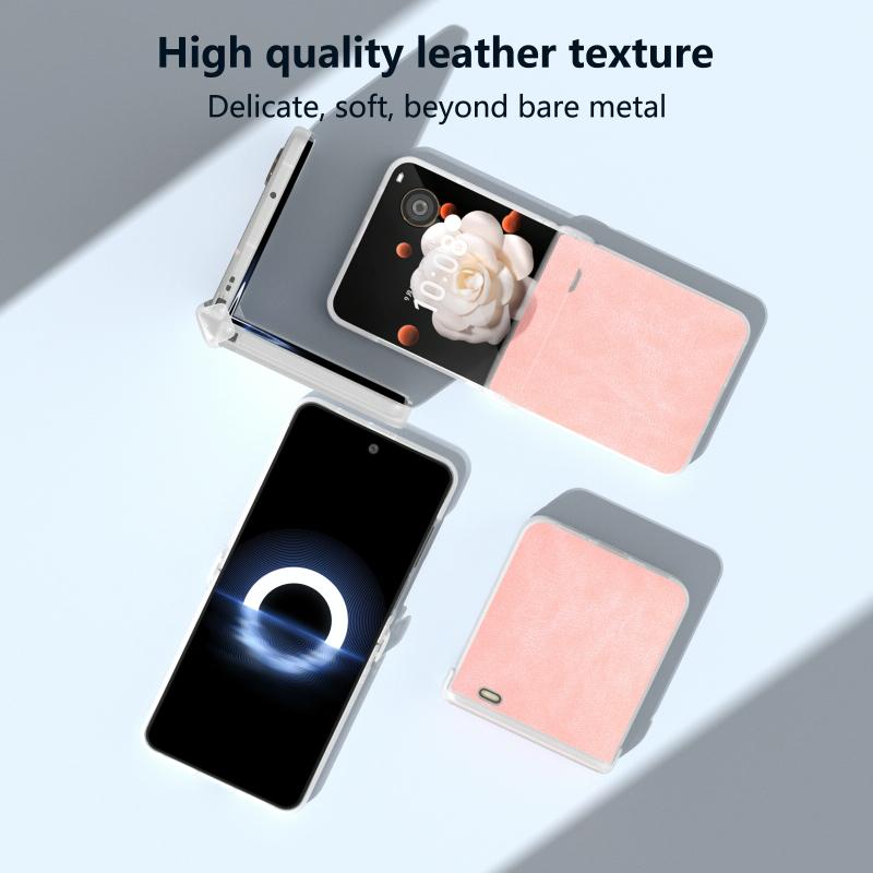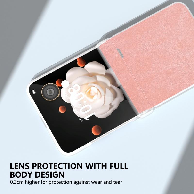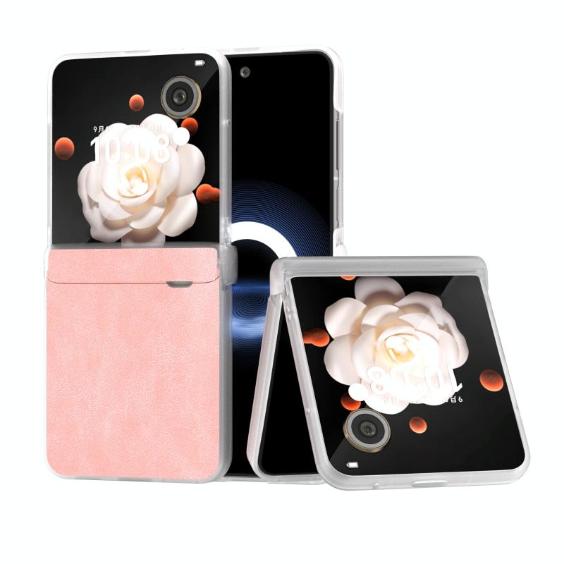 For Honor Magic V Flip Three Parts PU Leather Frosted Transparent Edge Phone Case(Pink)