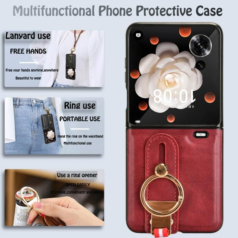 Για Honor Magic V Flip Wristband δέρμα πίσω υπόθεση τηλεφώνου (κόκκινο)