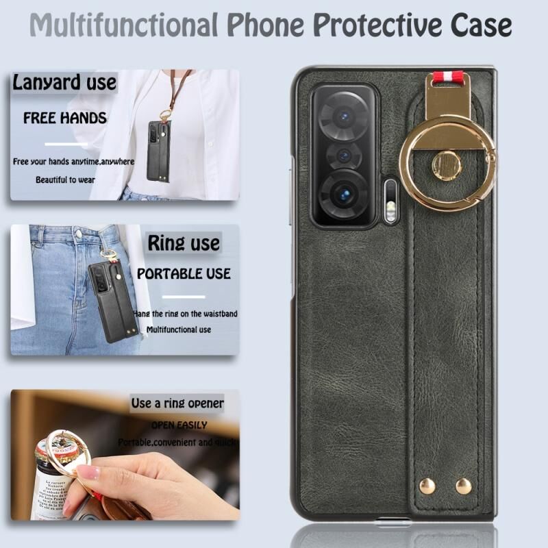 Για Honor Magic V Wristband δέρμα πίσω υπόθεση τηλεφώνου (πράσινο)
