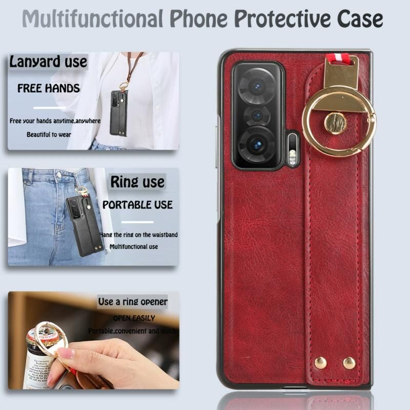 Για Honor Magic V Wristband δέρμα πίσω υπόθεση τηλεφώνου (κόκκινο)
