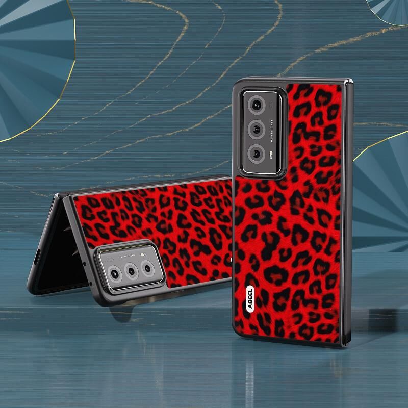 Θήκη τηλεφώνου για Honor Magic V2 ABEEL Μαύρο Χείλος με Εκτύπωση Λεοπάρδαλης (Χρυσό)
