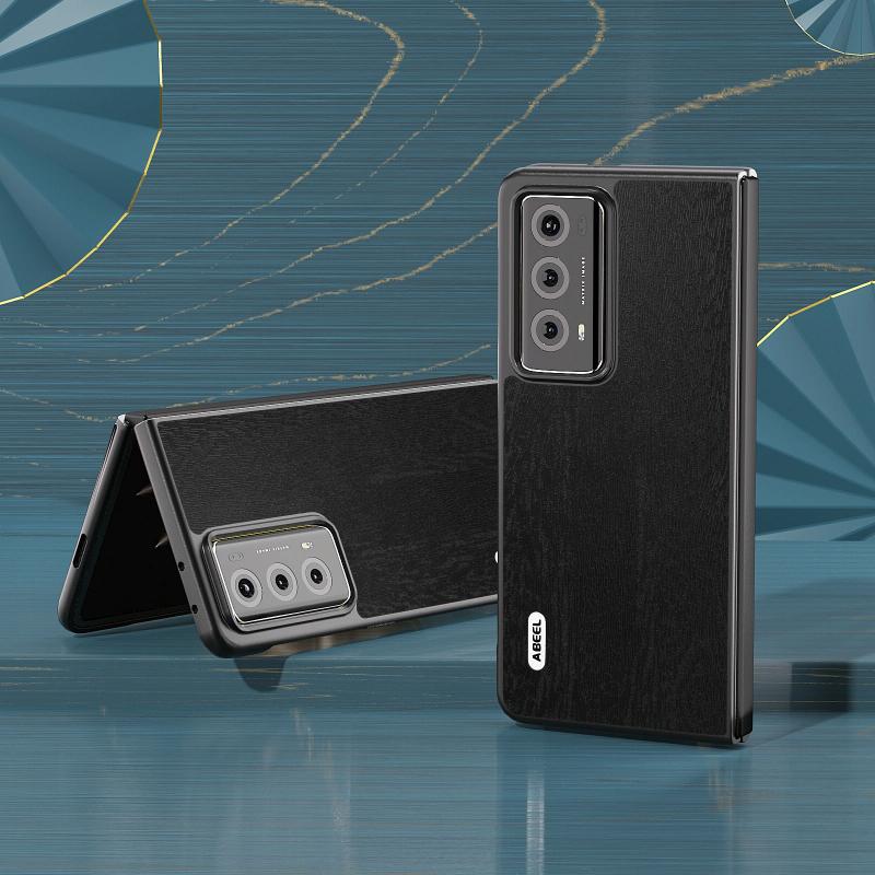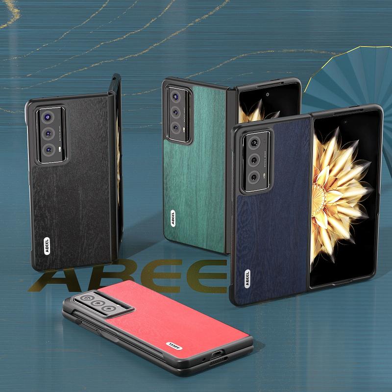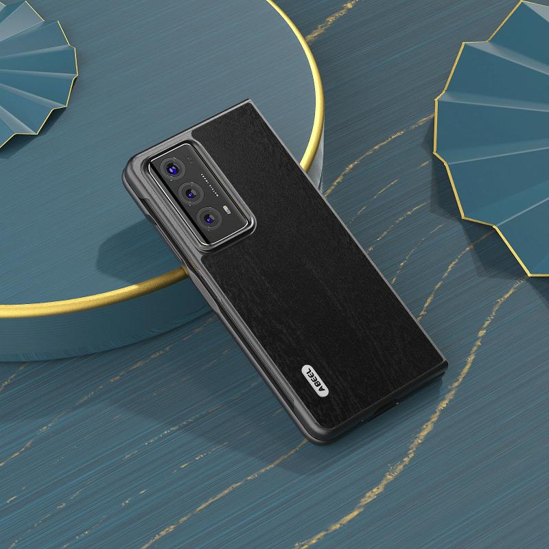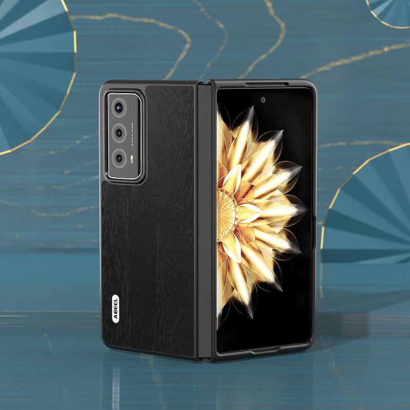 For Honor Magic V2 ABEEL Wood Texture PU Phone Case(Black)