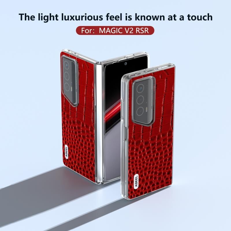 Θήκη τηλεφώνου Honor Magic V2 RSR Porsche Design ABEEL Διαφανές Πλαίσιο Γνήσιο Δέρμα με μοτίβο Κροκόδειλου (Μαύρο)