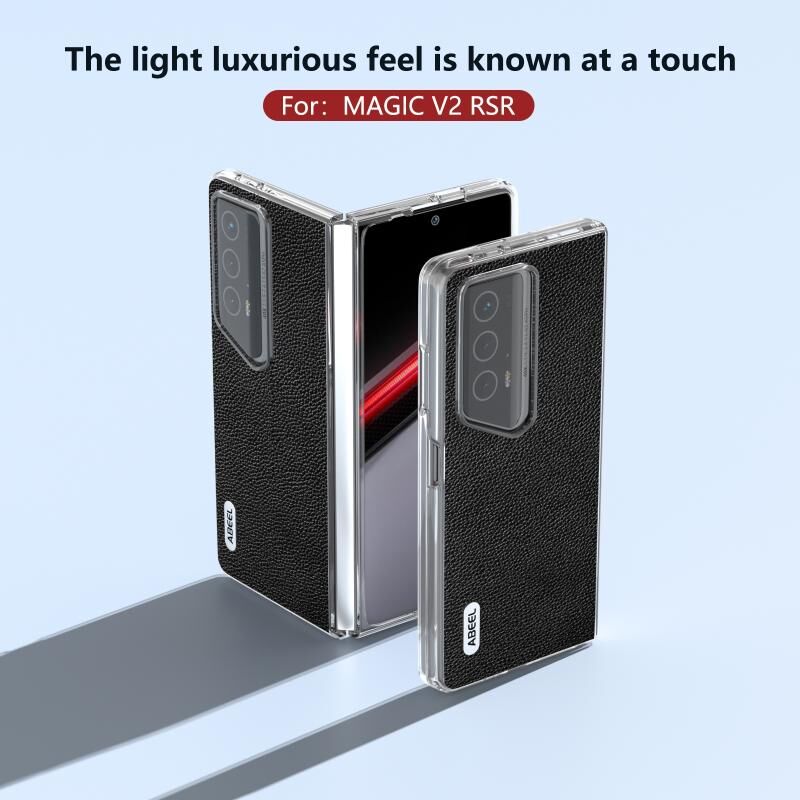 Θήκη τηλεφώνου For Honor Magic V2 RSR Porsche Design ABEEL Διαφανές Πλαίσιο Γνήσιο Δέρμα Mino (Black)