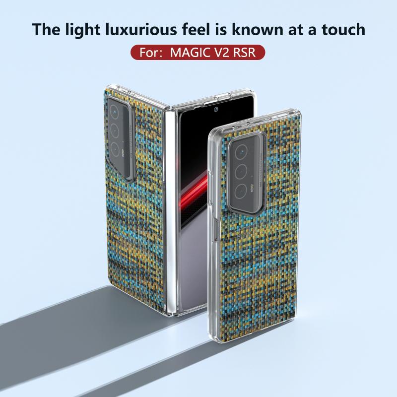 For Honor Magic V2 RSR Porsche Design Colorful Rhombic Texture Transparent Frame PU Phone Case(Gold)