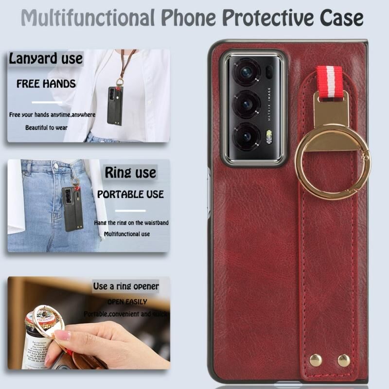 Για Honor Magic V2 Wristband δέρμα πίσω τηλέφωνο υπόθεση (Κόκκινο)