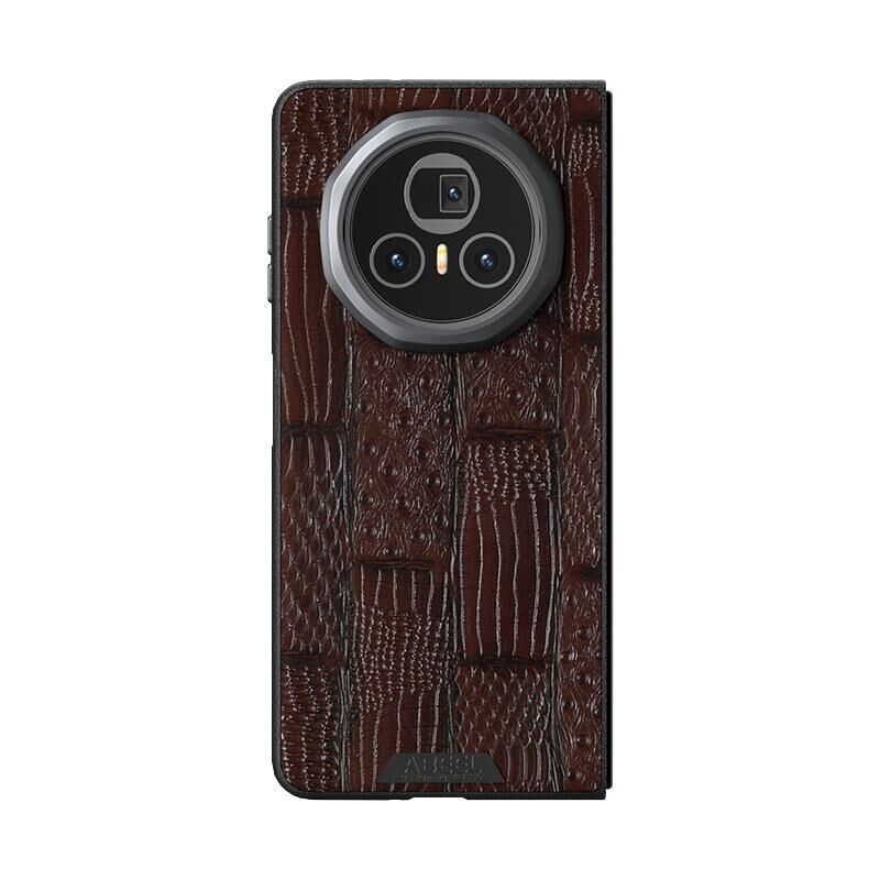 Θήκη τηλεφώνου από γνήσιο δέρμα MagSafe με μικρο-ανάγλυφο σχέδιο Beast Pattern 6D για Honor Magic V3 ABEEL (Καφέ)
