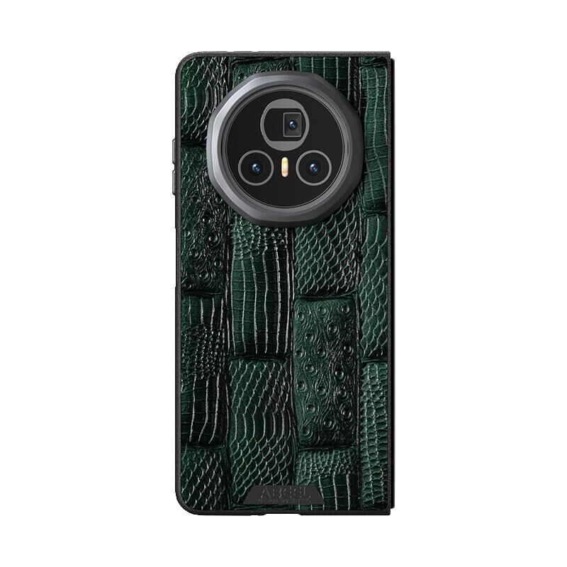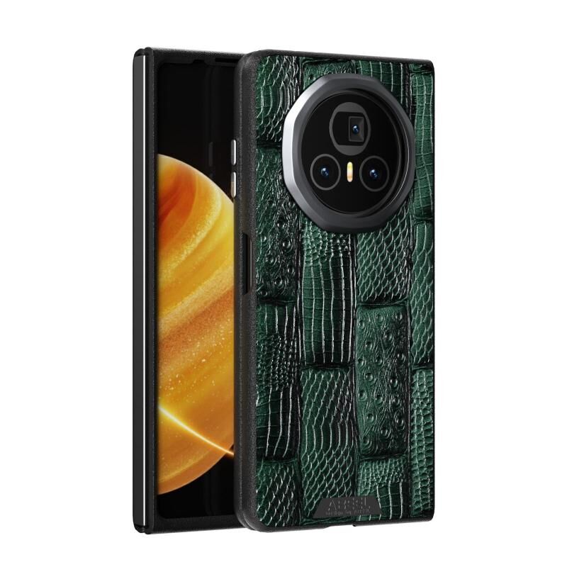 Θήκη τηλεφώνου από γνήσιο δέρμα MagSafe με μικρο-ανάγλυφο σχέδιο Beast Pattern 6D για Honor Magic V3 ABEEL (πράσινο)