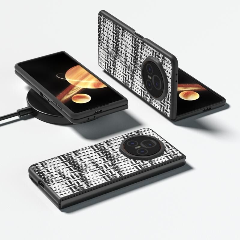 Για Honor Magic V3 Μαύρο πλαίσιο χρώμα πλέγμα υφή PU τηλέφωνο υπόθεση (Μαύρο)