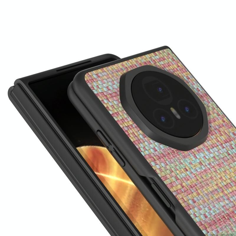 Για Honor Magic V3 Μαύρο πλαίσιο χρώμα πλέγμα υφή PU τηλέφωνο υπόθεση (ροζ)