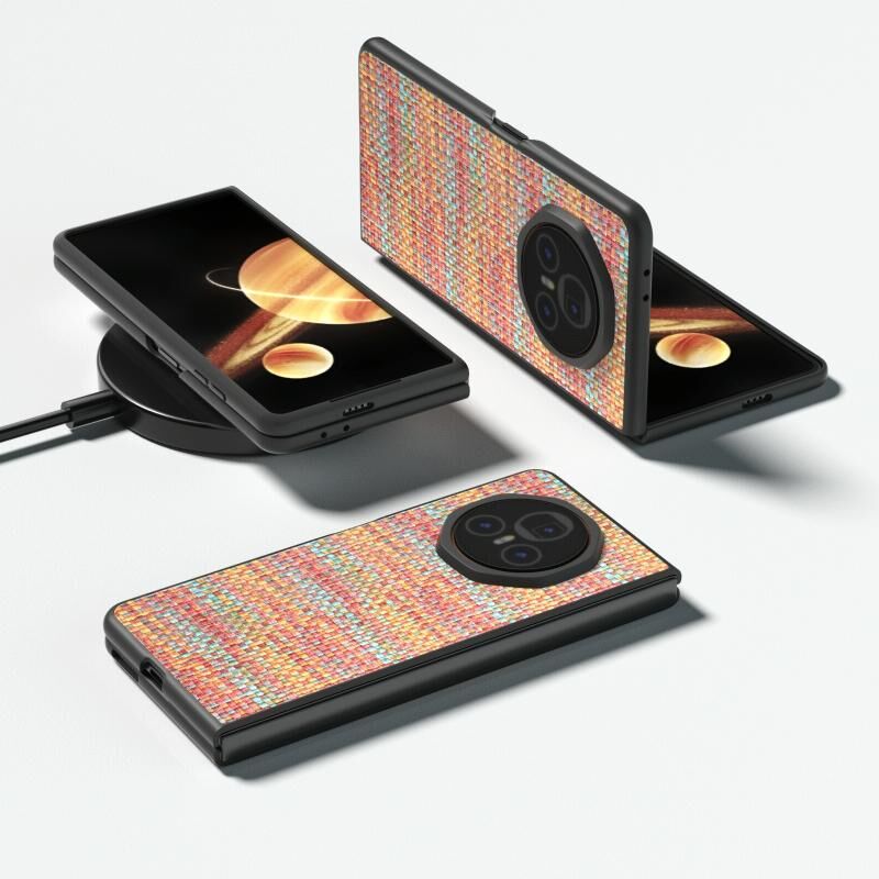 Για Honor Magic V3 Μαύρο πλαίσιο χρώμα πλέγμα υφή PU τηλέφωνο υπόθεση (μανταρίνι)