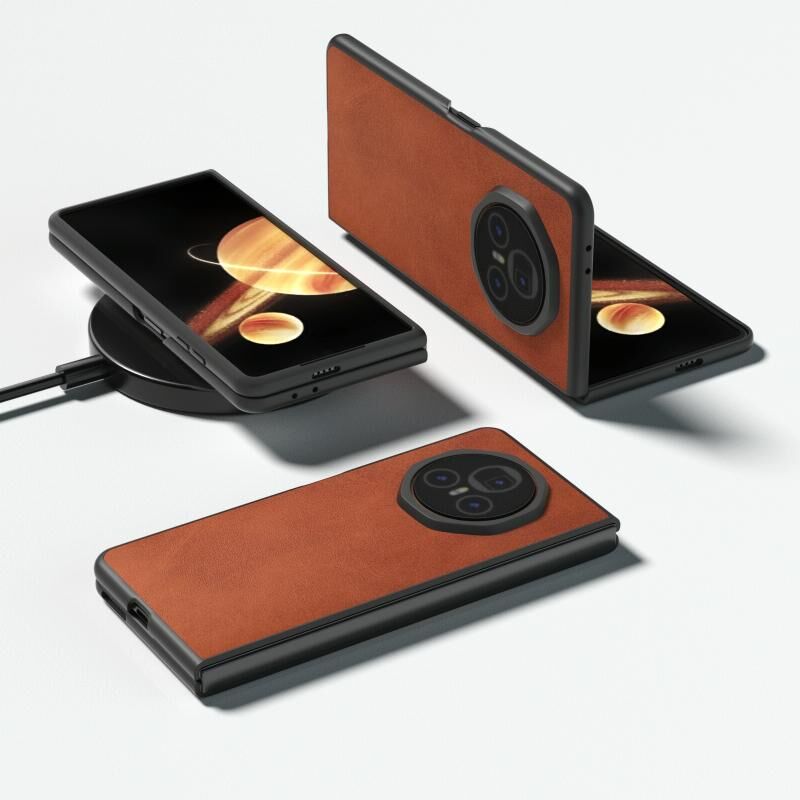Θήκη τηλεφώνου For Honor Magic V3 Μαύρο Πλαίσιο, Δερμάτινη Υφή Δύο Χρωμάτων PU (Μαύρο)
