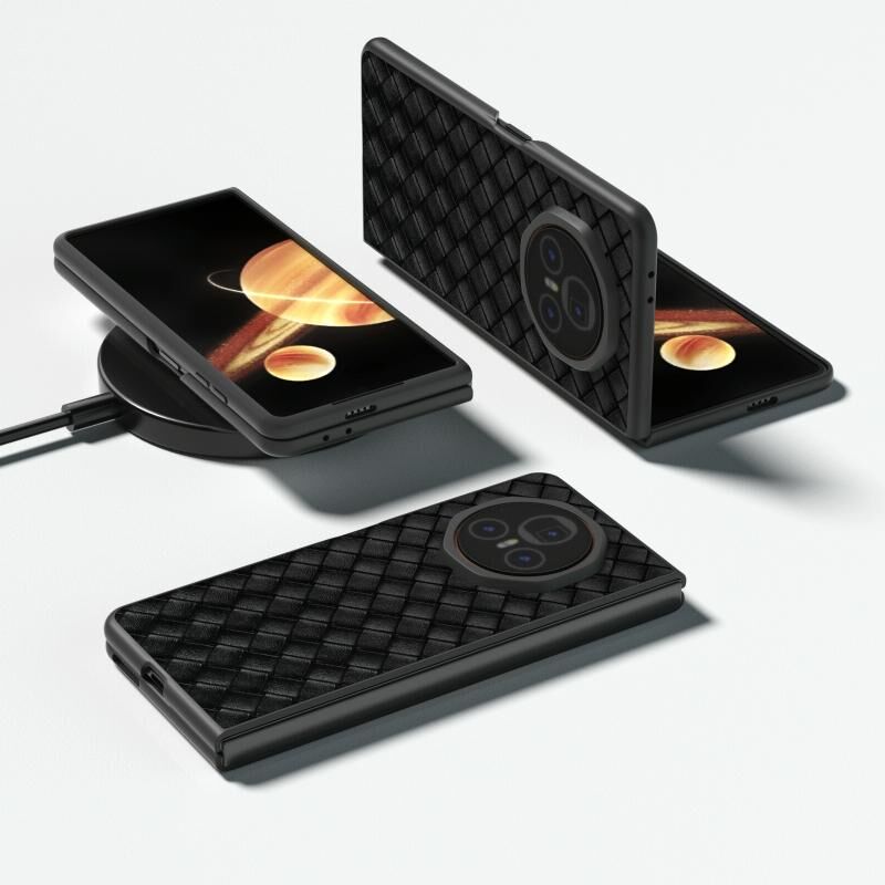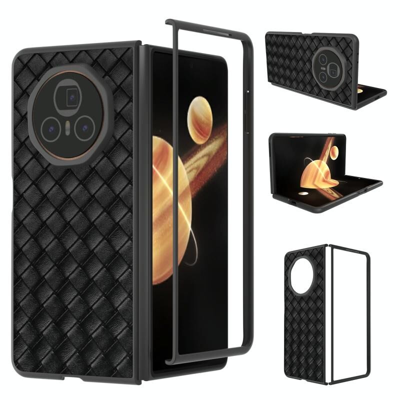 Για Honor Magic V3 Μαύρο πλαίσιο υφασμένα υφή PU υπόθεση τηλεφώνου (μαύρο)