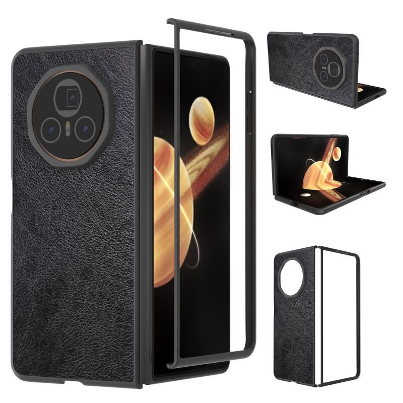 Για Honor Magic V3 Διπλό χρώμα Lichi Υφή PU τηλέφωνο υπόθεση (Μαύρο)