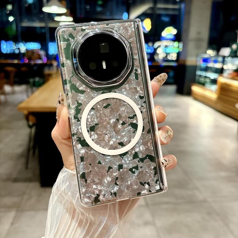 Θήκη τηλεφώνου For Honor Magic V3 Μαγνητικός Άξονας Περλέ Λευκό με Υφή και Συμβατότητα MagSafe (Ροζ πράσινο)