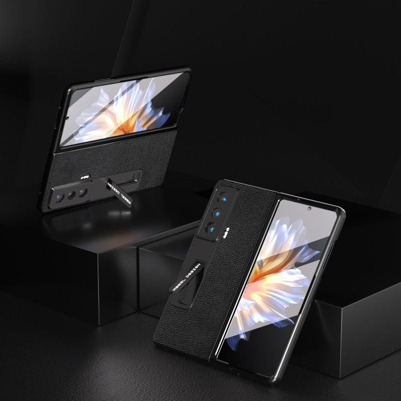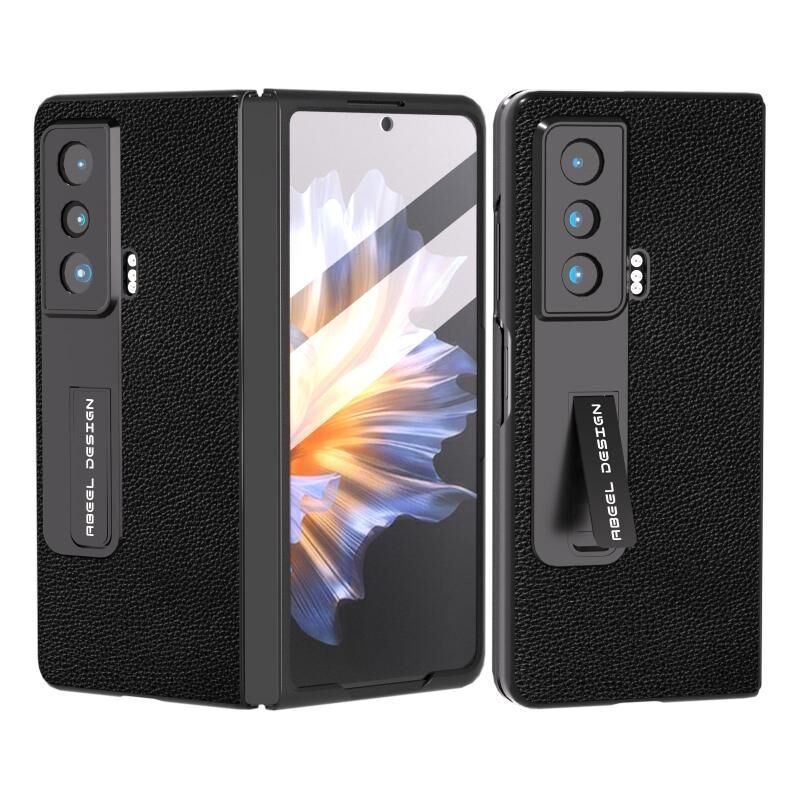 Θήκη τηλεφώνου για Honor Magic Vs ABEEL με ενσωματωμένο μαύρο περίγραμμα από γνήσιο δέρμα με βάση στήριξης (Πράσινο)