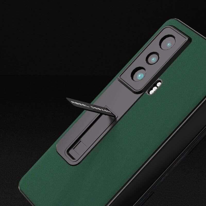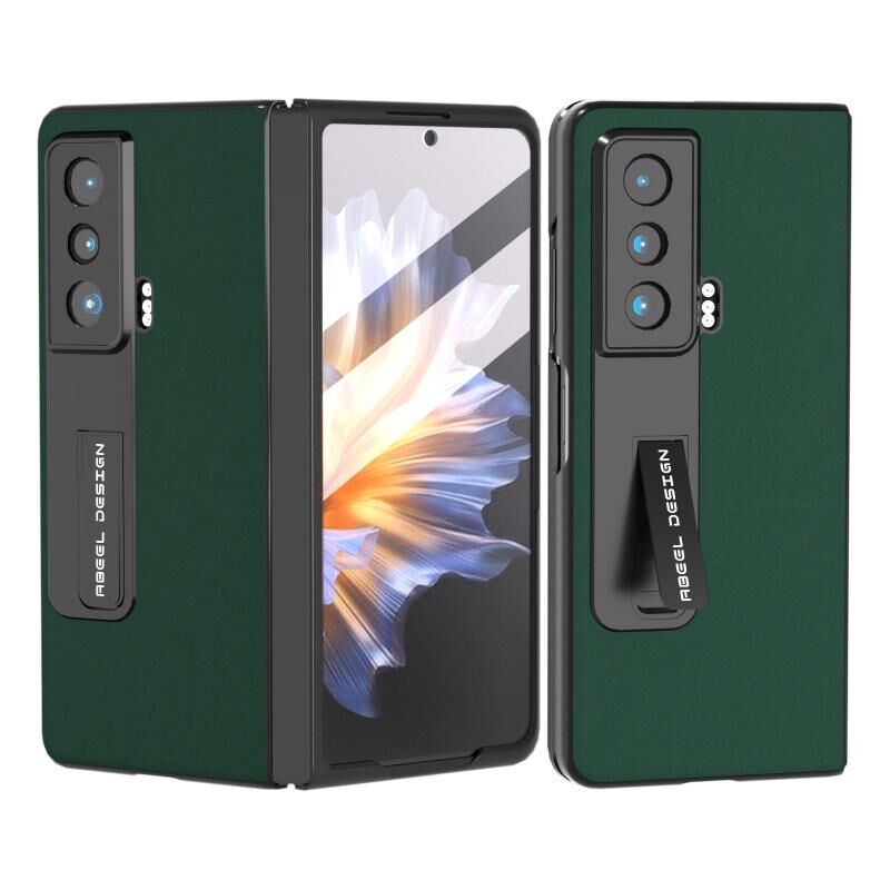 Θήκη τηλεφώνου από γνήσιο δέρμα με ενσωματωμένη βάση για Honor Magic Vs ABEEL, βελούδινης απαλής υφής (Μαύρο)