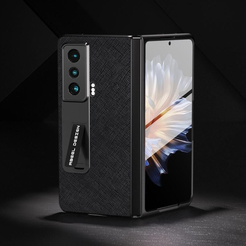 Θήκη τηλεφώνου από γνήσιο δέρμα με ενσωματωμένη διασταυρούμενη υφή για Honor Magic Vs με βάση (Μαύρο)