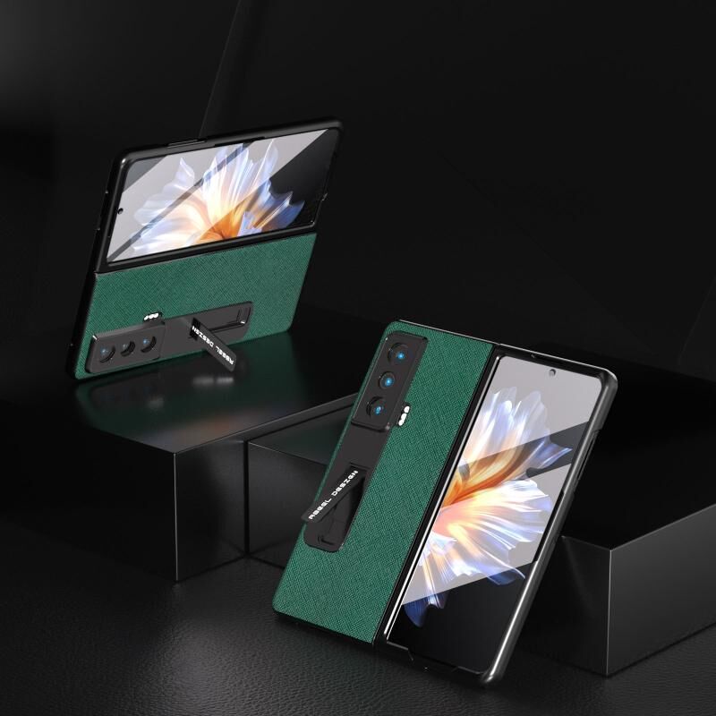 Θήκη τηλεφώνου από γνήσιο δέρμα με ενσωματωμένη διασταυρούμενη υφή για Honor Magic Vs με βάση (Μαύρο)