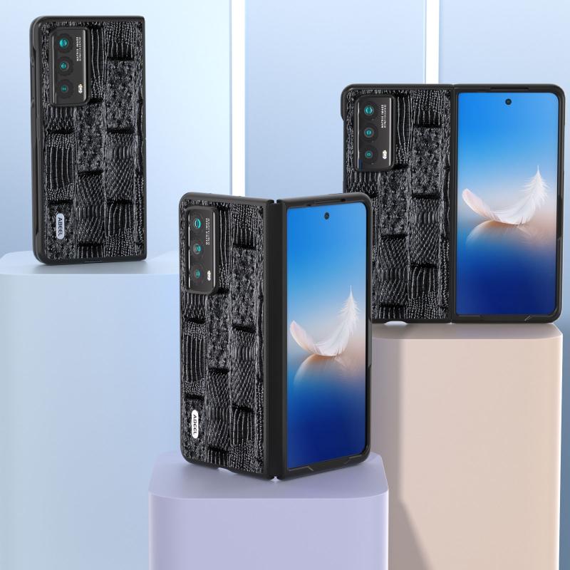 Θήκη τηλεφώνου For Honor Magic VS2 ABEEL από γνήσιο δέρμα με μοτίβο Mahjong και μαύρο περίγραμμα (Μαύρο)