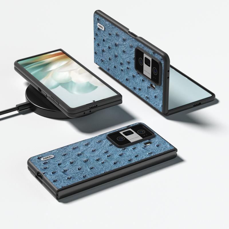 Θήκη τηλεφώνου από γνήσιο δέρμα με υφή στρουθοκάμηλου για Honor Magic Vs3 ABEEL (Μπλε)