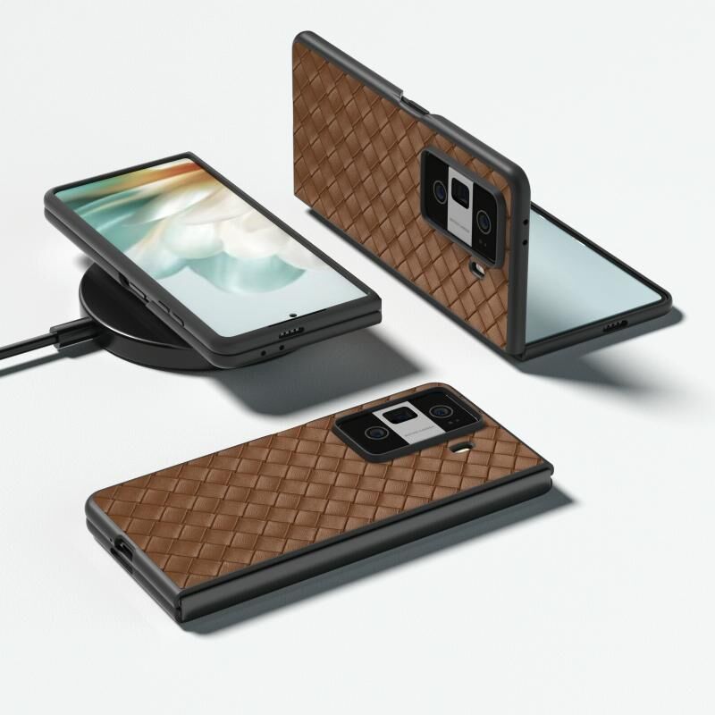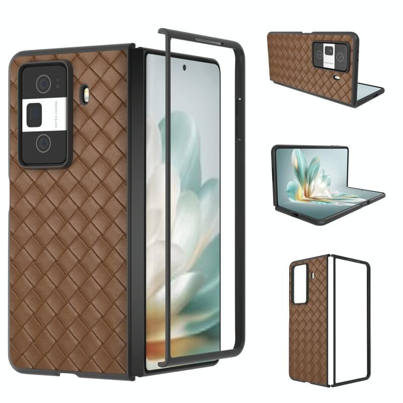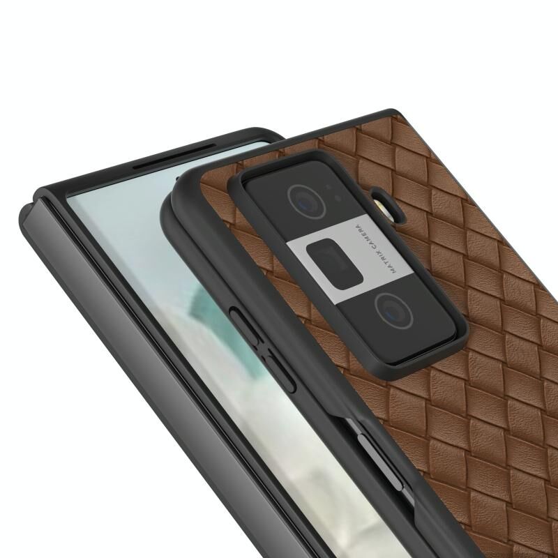 Για Honor Magic Vs3 Μαύρο πλαίσιο υφαντά Υφή PU υπόθεση τηλεφώνου (καφέ)