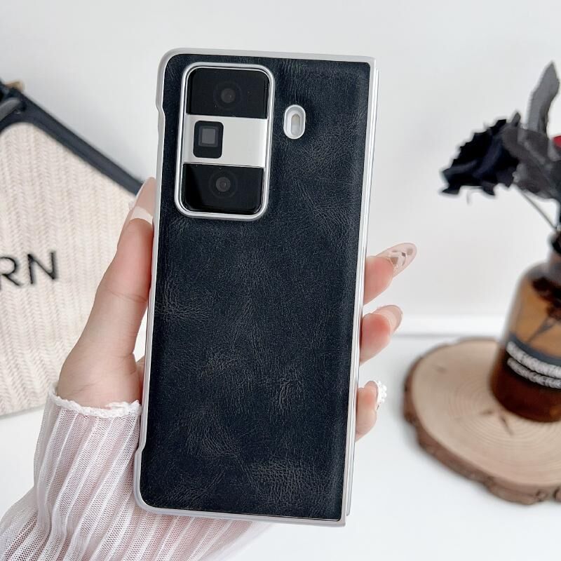 Για Honor Magic VS3 Μεταλλικό χρώμα δέρμα δέρματος αίσθηση δέρμα τηλέφωνο υπόθεση (μαύρο)