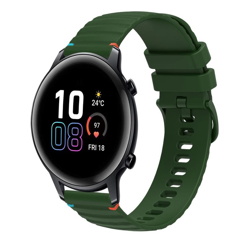 For Honor Magic Watch 2 42mm Wavy Dotted Stitched 20mm Silicone Watch Band(Army Green)
