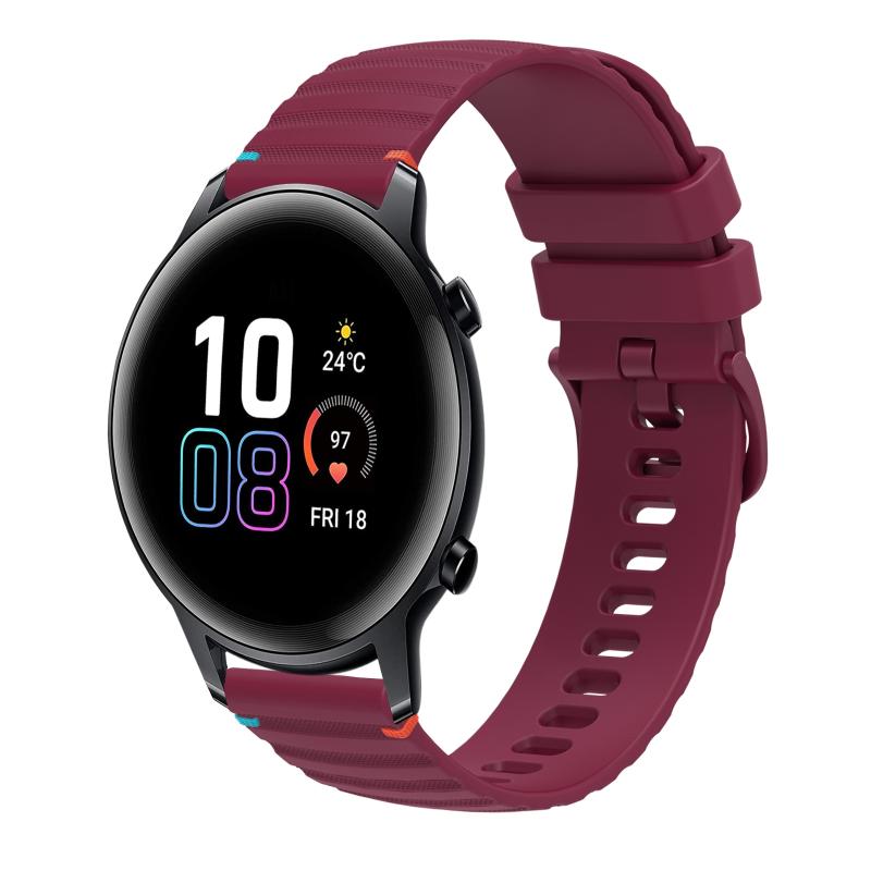For Honor Magic Watch 2 42mm Wavy Dotted Stitched 20mm Silicone Watch Band(Wine Red)