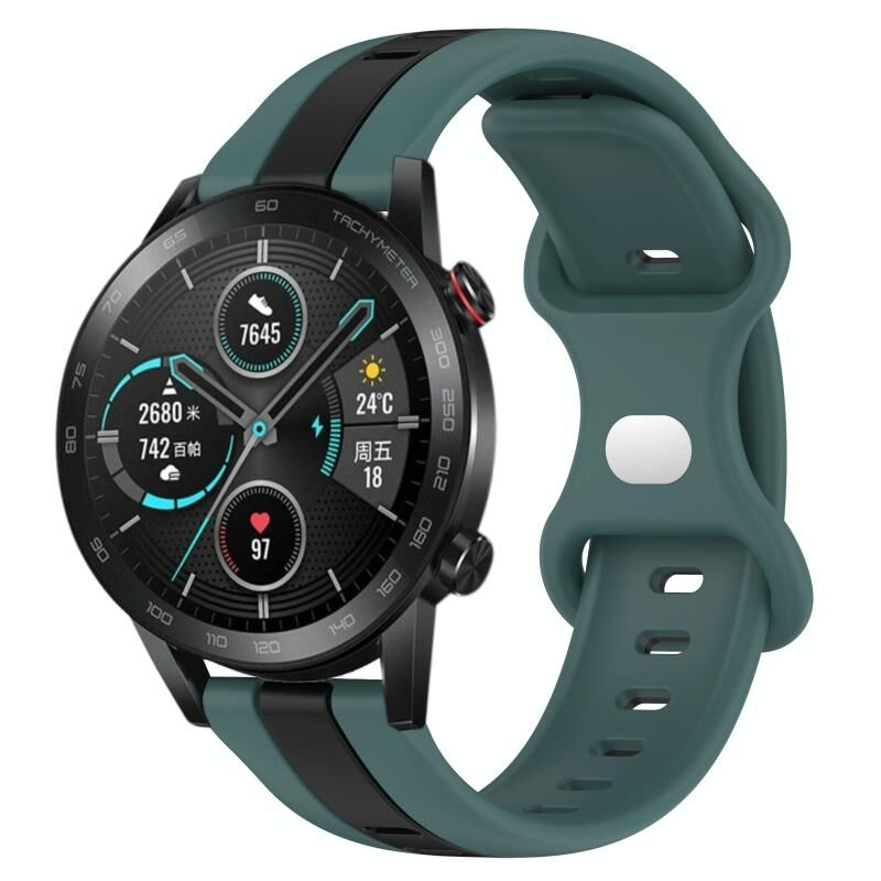Για το Honor Magic Watch 2 46mm 20mm Butterfly Buckle δύο χρωμάτων ζώνη σιλικόνης ρολόι (πράσινο + μαύρο)