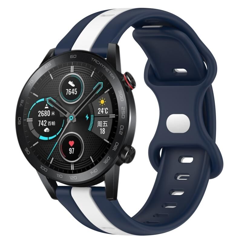 Για το Honor Magic Watch 2 46mm 20mm Butterfly Buckle δύο χρωμάτων σιλικόνης ρολόι μπάντα ρολογιών (λευκό + μπλε)