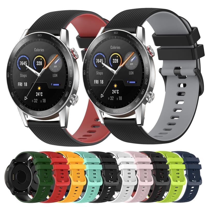 Για το Honor Magic Watch 2 46mm 22mm Checkered Two-Color Silicone Watch Band (μαύρο + γκρι)