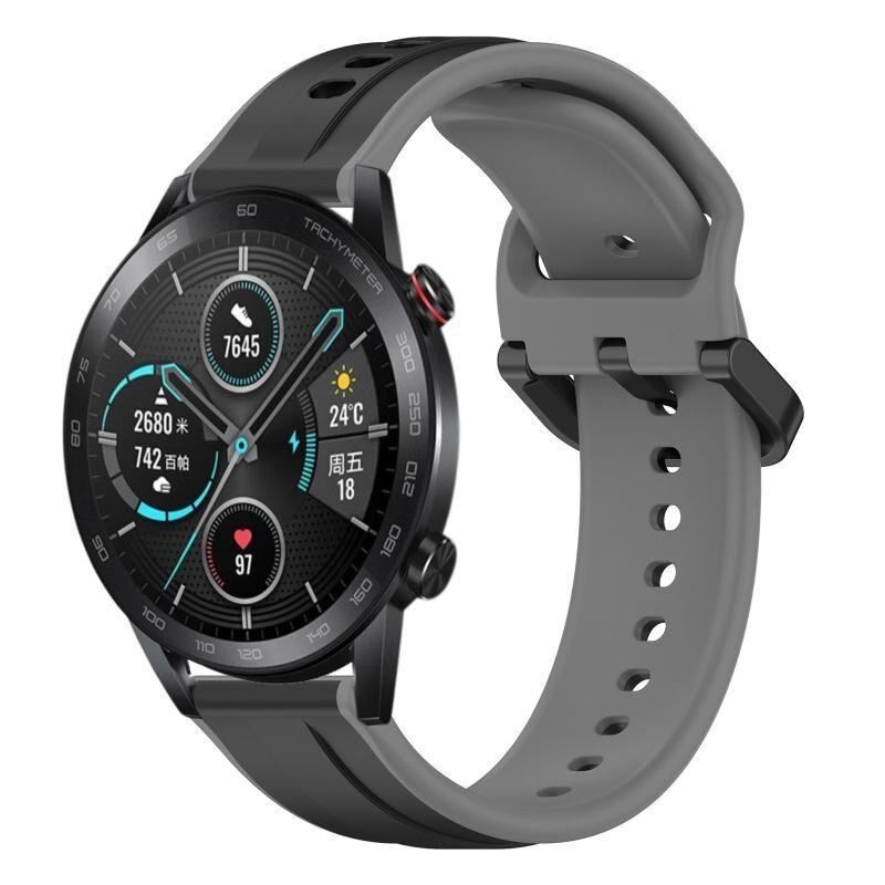 Για το Honor Magic Watch 2 46mm 22mm Convex Loop δύο χρωμάτων σιλικόνης ρολόι μπάντα ρολογιού (μαύρο + γκρι)