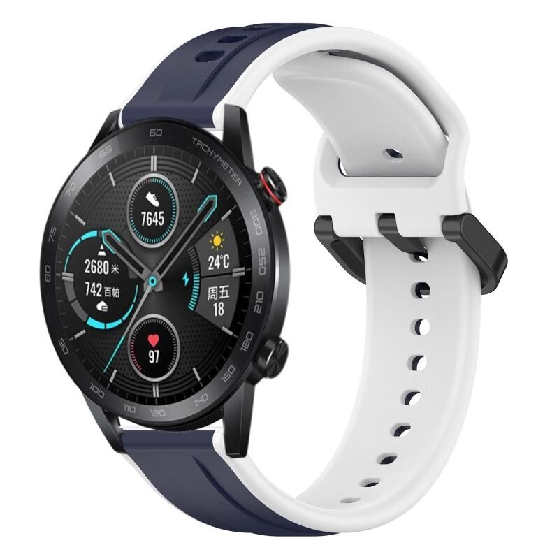 Για Honor Magic Watch 2 46mm 22mm κυρτό βρόχο δύο χρωμάτων σιλικόνης ρολόι μπάντα (Midnight Blue + Λευκό)