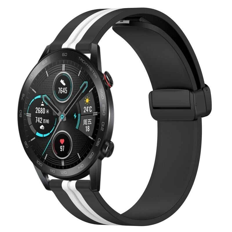 Για το Honor Magic Watch 2 46mm 22mm Πτυσσόμενο μαγνητικό κούμπωμα ζώνη ρολογιού σιλικόνης (μαύρο + λευκό)