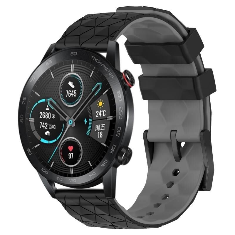 Για το Honor Magic Watch 2 46mm 22mm ποδοσφαιρικό μοτίβο δύο χρωμάτων σιλικόνης (μαύρο + γκρι)