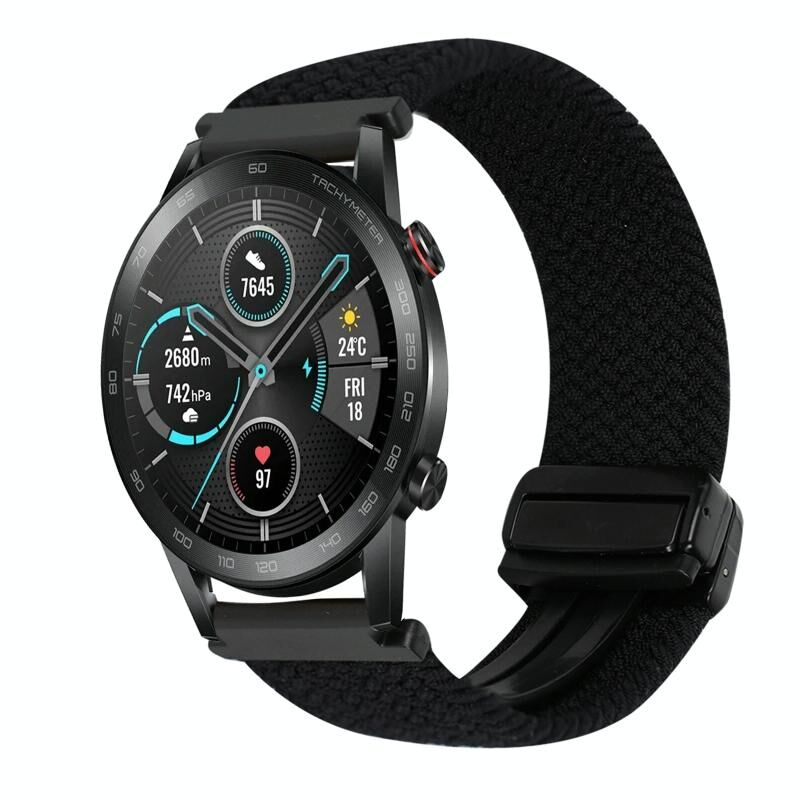 Για το Honor Magic Watch 2 46mm 22mm Μαγνητική πόρπη Braided Watch Band (μεταλλικό μαύρο)