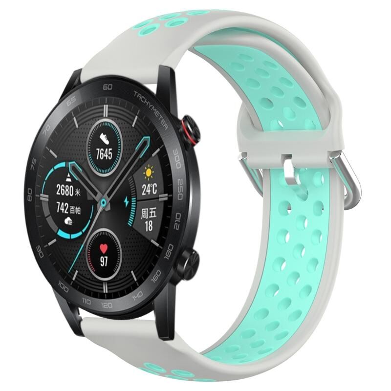 Για το Honor Magic Watch 2 46mm 22mm Διάτρητη αναπνεύσιμη αθλητική ζώνη ρολογιού σιλικόνης (γκρι + Water Duck)