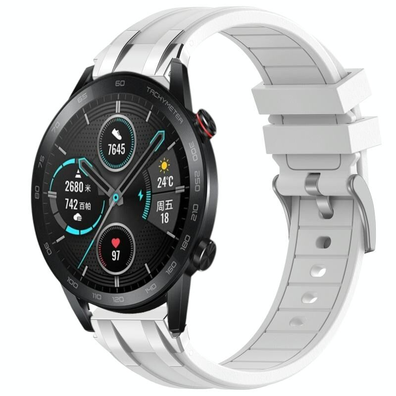 Για το Honor Magic Watch 2 46mm 22mm Γρήγορη απελευθέρωση ασημένια πόρπη βασιλική ζώνη ρολογιού σιλικόνης (λευκό)