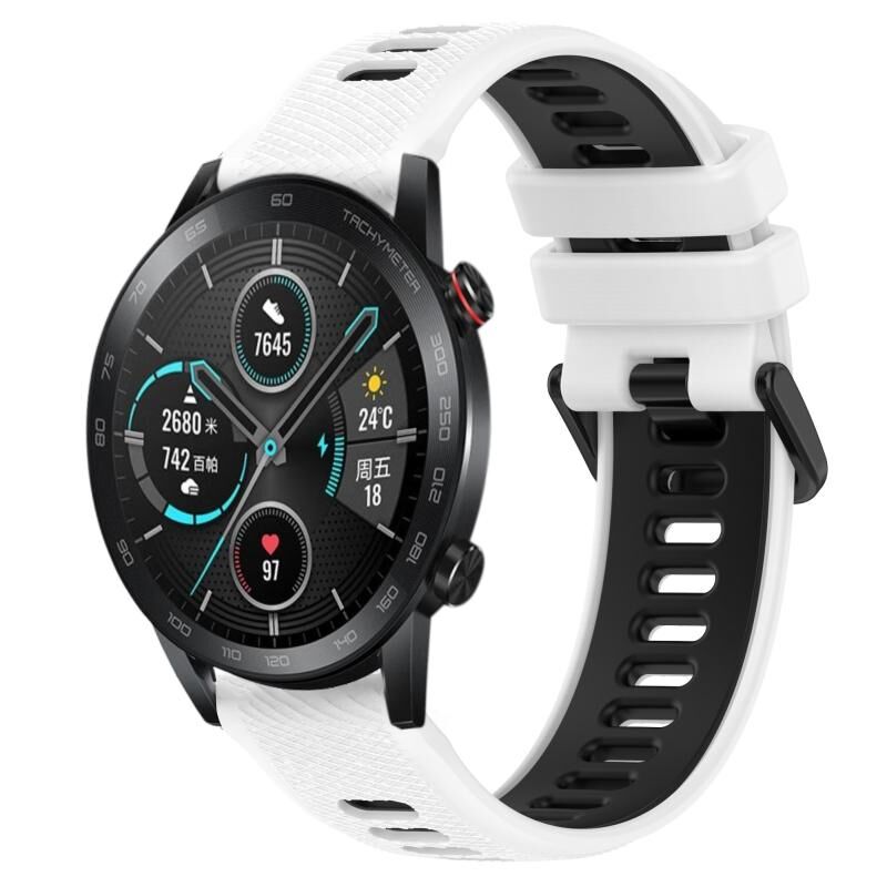 Για το Honor Magic Watch 2 46mm 22mm Αθλητικό ρολόι σιλικόνης δύο χρωμάτων (Λευκό + Μαύρο)