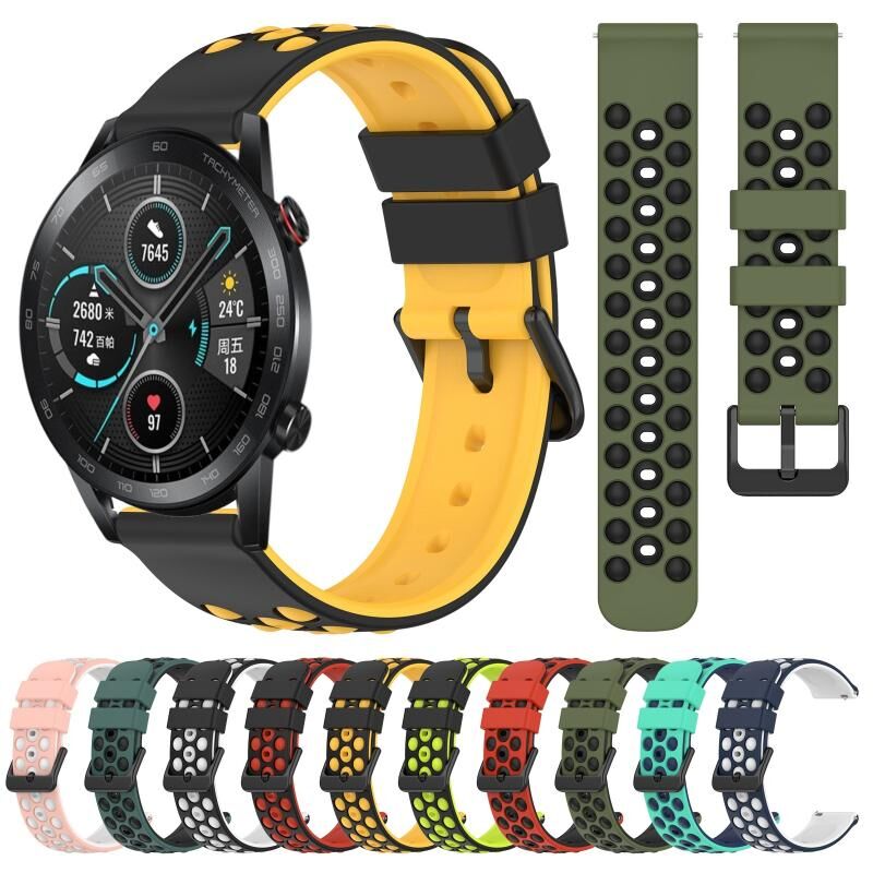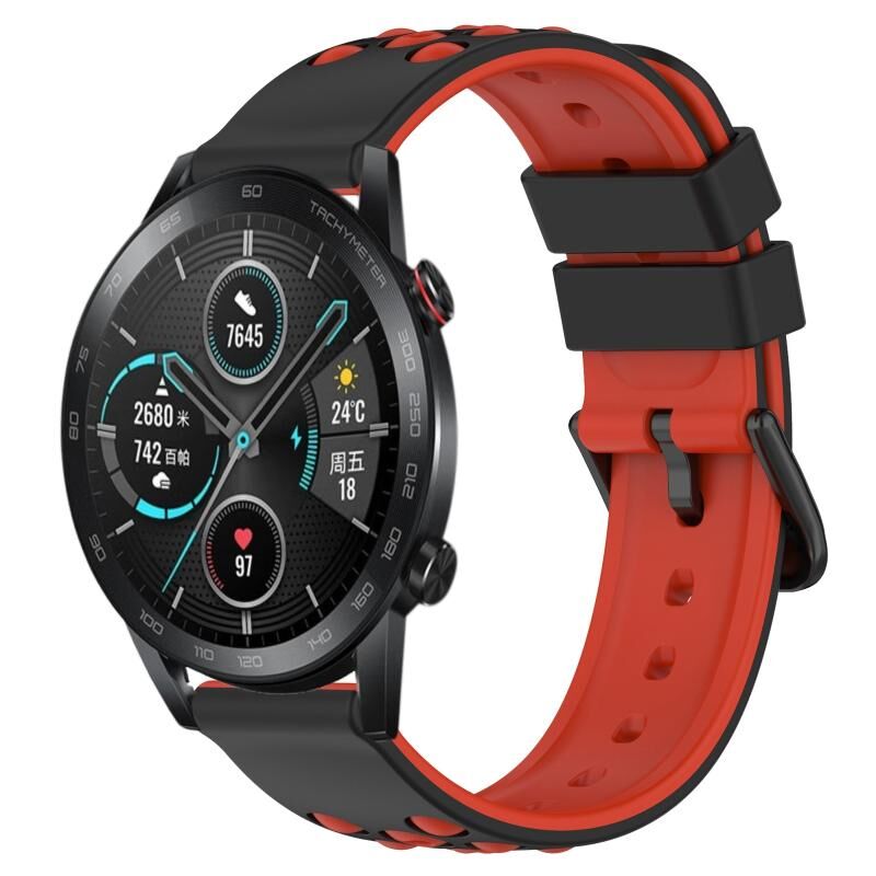 Για το Honor Magic Watch 2 46mm 22mm Δύο-χρώμα πορώδη ζώνη ρολογιού σιλικόνης (μαύρο + κόκκινο)