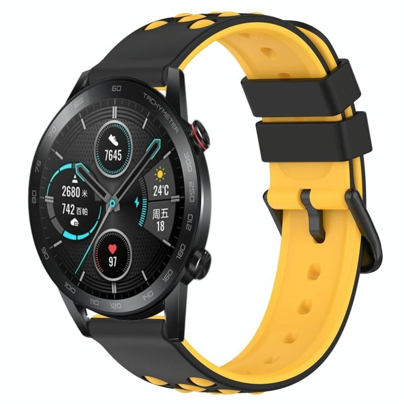 Για το Honor Magic Watch 2 46mm 22mm Δύο χρωμάτων πορώδη ζώνη ρολογιού σιλικόνης (μαύρο + κίτρινο)