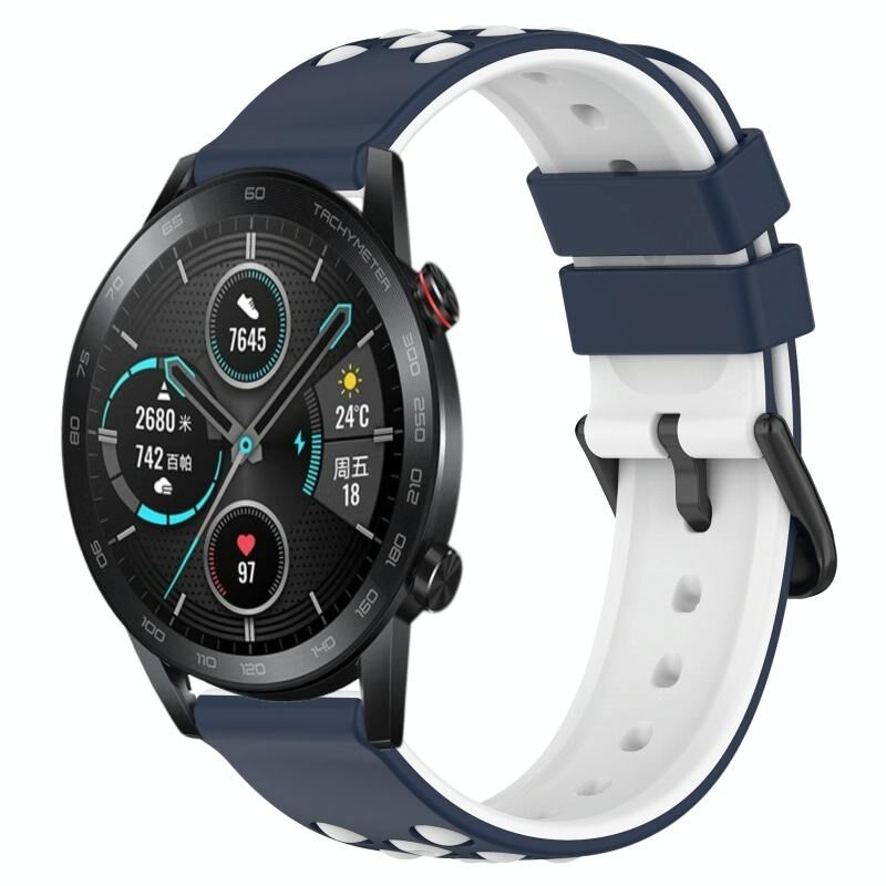Για το Honor Magic Watch 2 46mm 22mm Δύο χρωμάτων πορώδη ζώνη ρολογιού σιλικόνης (Μπλε μεσάνυχτα + Λευκό)