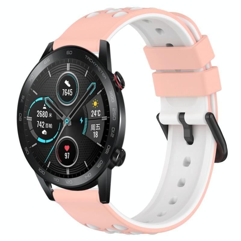 Για το Honor Magic Watch 2 46mm 22mm Δύο χρωμάτων πορώδη ζώνη ρολογιού σιλικόνης (ροζ + λευκό)