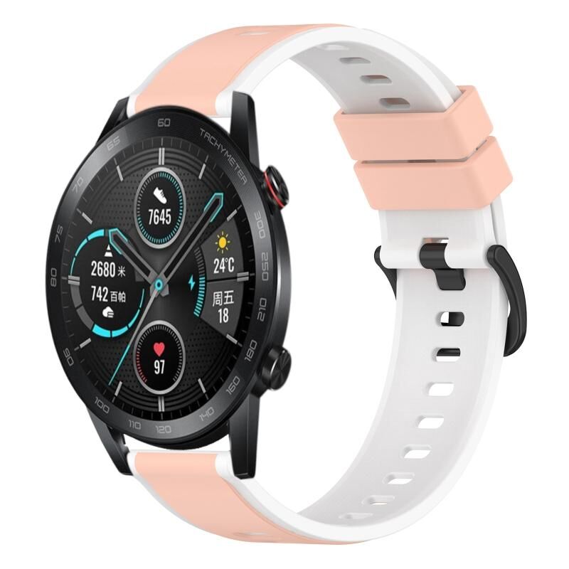 Για το Honor Magic Watch 2 46mm 22mm Δύο χρωμάτων σιλικόνης ζώνη ρολογιού (ροζ+λευκό)