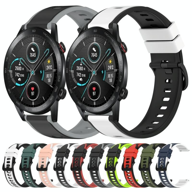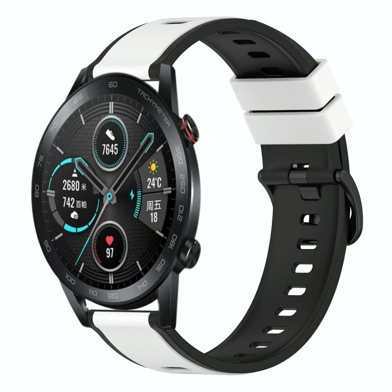 Για Honor Magic Watch 2 46mm 22mm Δύο χρωμάτων σιλικόνης ρολόι μπάντα ρολογιού (λευκό + μαύρο)