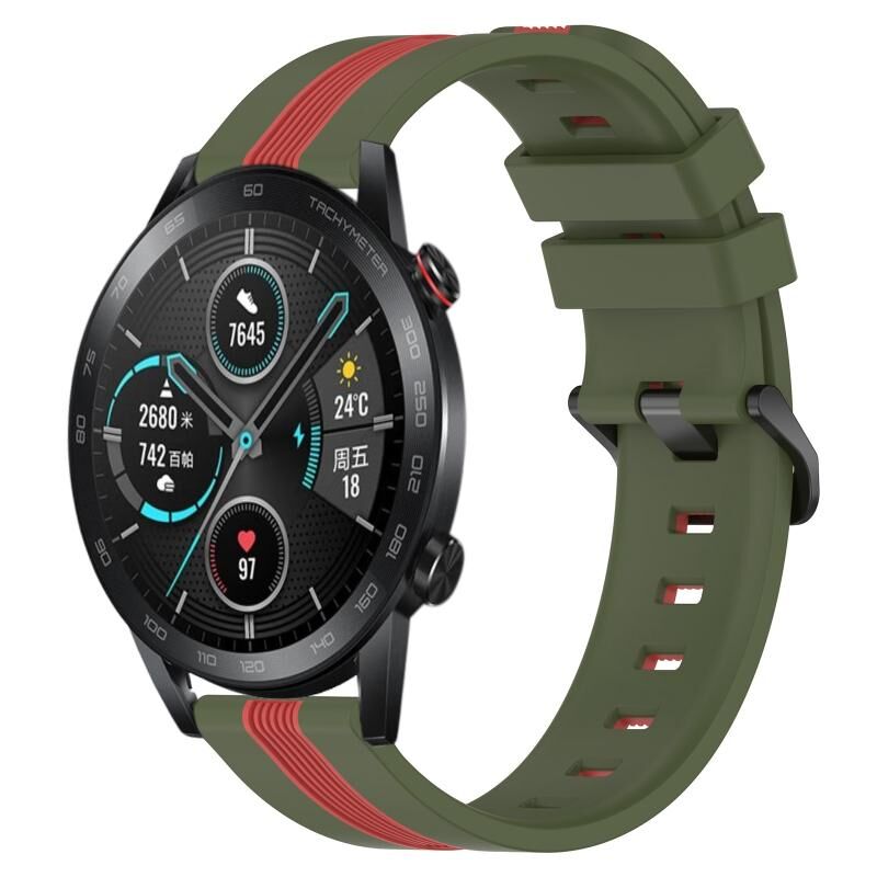 Για το Honor Magic Watch 2 46mm 22mm Κάθετη ζώνη ρολογιού σιλικόνης δύο χρωμάτων (πράσινο στρατού + κόκκινο)
